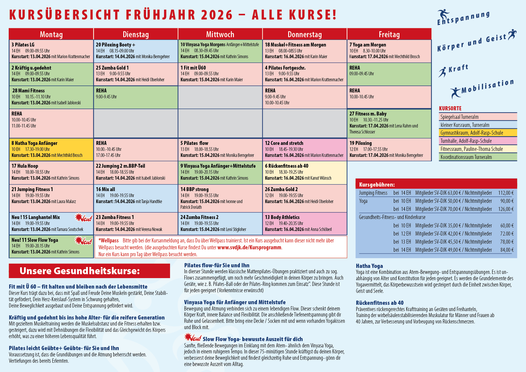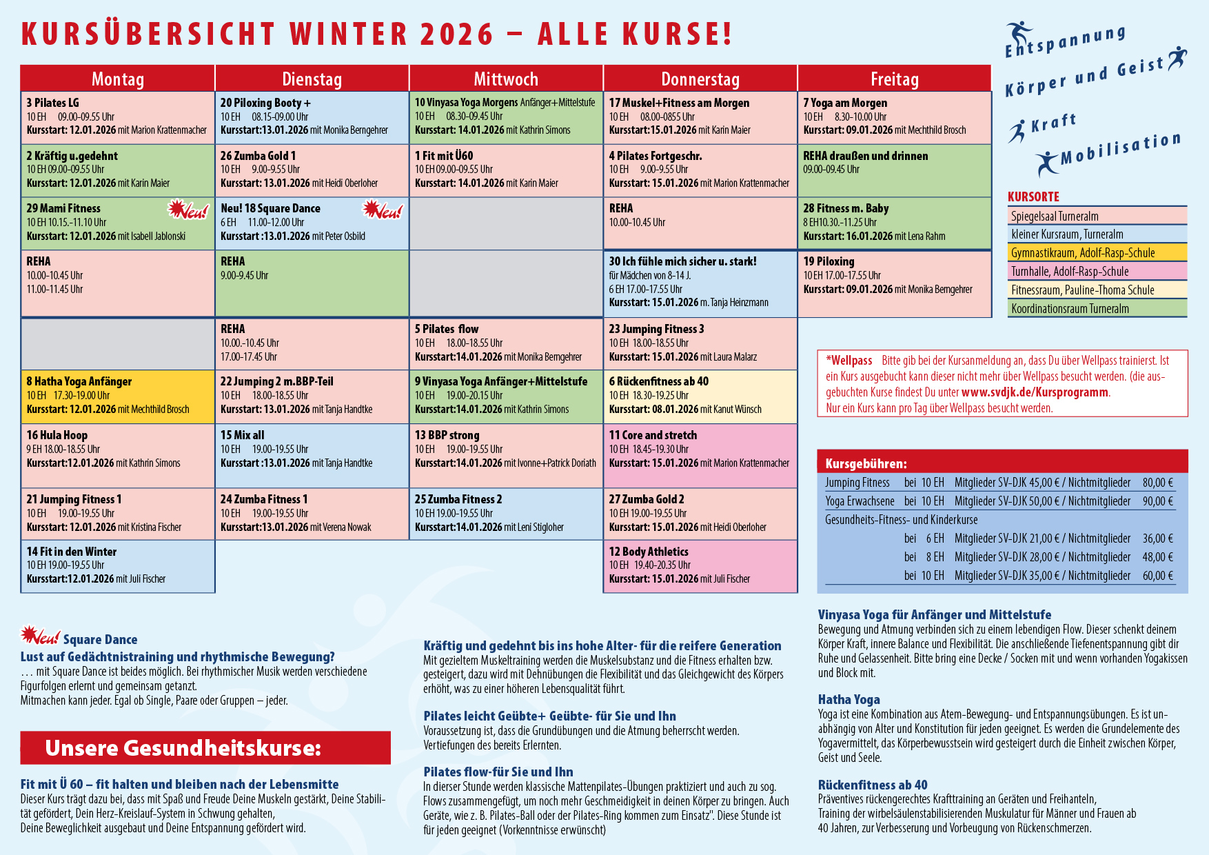 Vorbeikommen und Mitmachen- der Sportverein SV-DJK Kolbermoor e.V. mit seinen 14 Abteilungen freut sich auf Ihren Besuch. Fitness-, Gesundheits- und Tanzkurse…